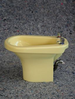 Bidet en céramique émaillée, de couleur jaune pastel, compatible avec lavabo double vasque et porte savon