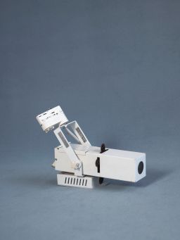 Spot basse tension de type cadreur de marque MOLE RICHARDSON, transformateur électronique pouvant être intégré, puissance maximale 35 à 75 Watts, rotation 360°, inclinaison 70°.
