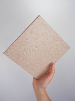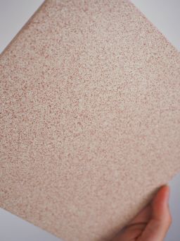 Carreau de carrelage ciment de format carré, couleur beige mouchetée rouge.