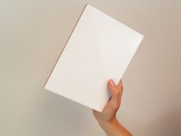 Carreau de faïence murale à bords droits, de format rectangulaire, couleur blanche.