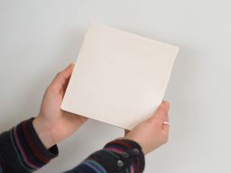Carreau de faïence murale à bords droits en terre cuite émaillée, couleur blanc, format carré.