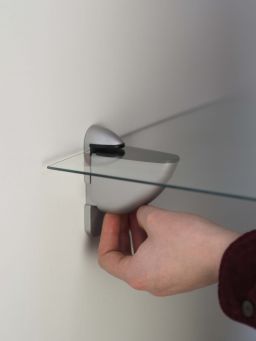 Console PELICAN pour tablette verre ou bois de 8 à 40 mm, réglage en hauteur grâce à la fixation murale, fourni avec sa quincaillerie.
