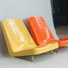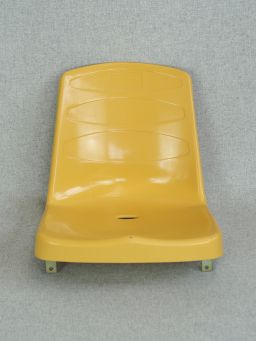 Coque d’assise pour tribune à dossier, pose en nez de marche, fourni avec platine de fixation et quincaillerie, de couleur jaune (RAL 1018).