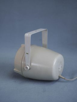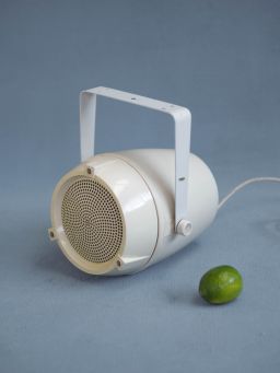 Haut-parleur sphérique ovoïde suspendu, de marque Rondson, modèle 165 TRC de couleur beige, adaptée à la sonorisation de grands volumes, peut se brancher en série.