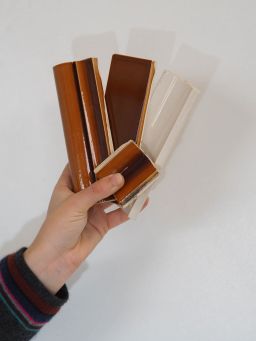 -listel en terre cuite émaillée de type moulure, couleur brun flammé