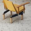 Pour cette première édition, nous avons accueilli Arnaud Eubelen. En immersion dans le stock du Parpaing, il a identifié, à partir des gisements disponibles, différentes combinaisons possibles pour assembler et fabriquer une série d’objets. En privilégiant les matériaux disponibles en quantité au Parpaing — coques de tribunes, dalles de pierre, spots — la recherche aboutit à quatre propositions : Rock Steady, Home Support et Corbel Set.