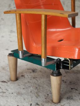 Home Support est une assise conçue à partir de coques de tribune d’un ancien dojo à Wasquehal (59), de poignées de porte d’une ancienne résidence étudiante, de pieds à visser provenant des Saisons Zéro (59) et d’élément en acier d’une aire de jeux.