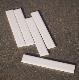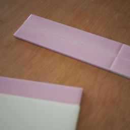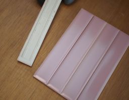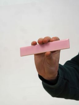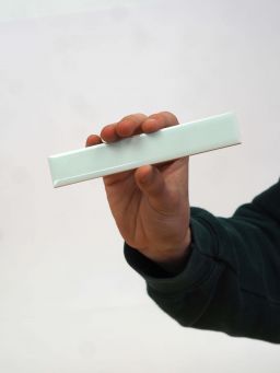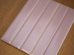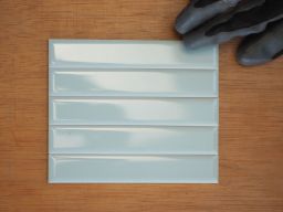 Listel mural à bords droits en terre cuite émaillée, couleur rose pastel, bleu pastel, jaune pastel ou beige.