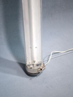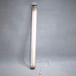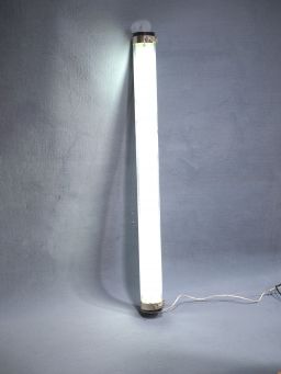 Lampe tubulaire à LED intégrée 230V, de marque LUMI-SPOT, de référence TUB154B1, jeu de deux clips de fixation type grenouillère, filins de suspension inclus.