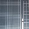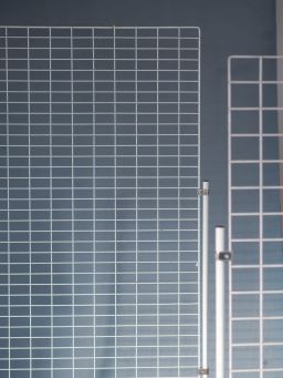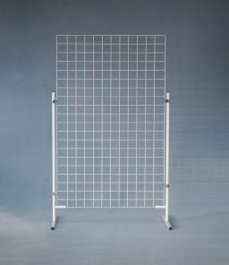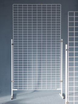 Panneau d’exposition grillagé monté sur pieds amovibles pour scénographie.