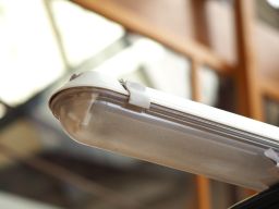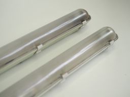 Luminaire étanche de type tube fluorescent, de marque MAZDA, modèle PARK STD 136 I, convertible en LED à la demande.