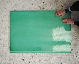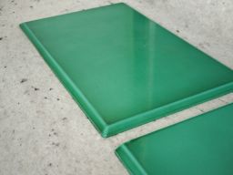 Eléments extraits d’un plan de travail en pierre de lave émaillée, de couleur vert émeraude.