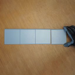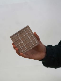 Carreau de faïence, format carré, couleur gris clair satiné, état neuf.