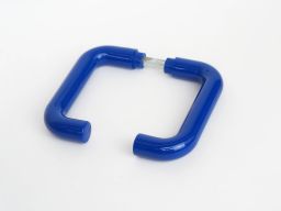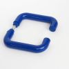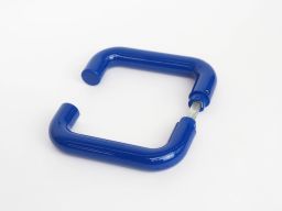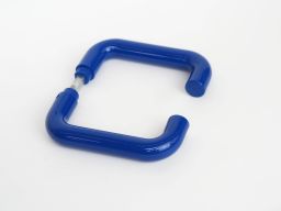 Paire de poignées de porte contre-coudées à rosace ronde, de marque inconnue, rosace de fonction ronde clé I, de couleur bleue.