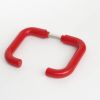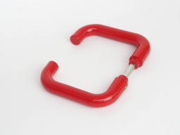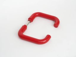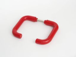 Poignée de porte béquille double coudée, de marque inconnue, couleur rouge clair.