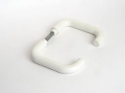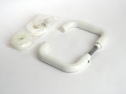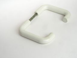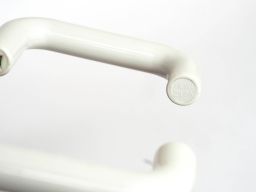 Bequille double contre-coudée sur rosace ronde, de marque inconnue, de couleur blanc.