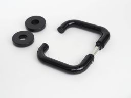Bequille double contre-coudée sur rosace ronde, de marque inconnue, de couleur noir.