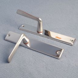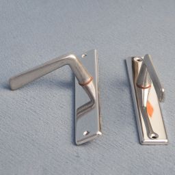 Paire de poignées de porte à béquille bec de cane, de marque BRICARD, modèle Sterlium, finition chrome