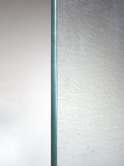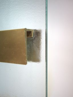 Panneau de porte en verre texturé, à barre de tirage horizontale.