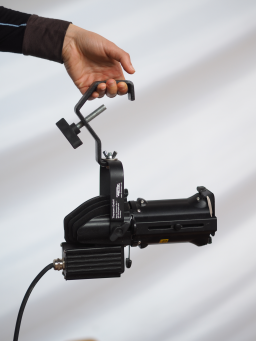 Projecteur cadreur à LED de marque VARYTEC. Modèle LED Profile Mini IP65 5600K bk, quatre couteaux coulissants compatibles disponible sur demande pour l’éclairage temporaire d’objets ou la projection de gobos.