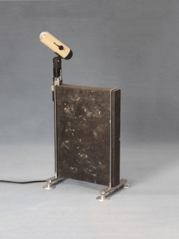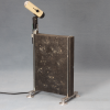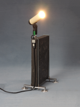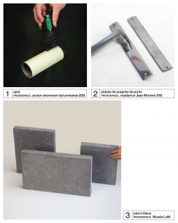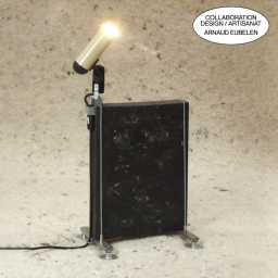 Rock Steady est une série de lampes réalisée à partir de pierres bleues du musée LaM de Villeneuve d’Ascq, de dalles de schiste issues de la déconstruction d’un parvis d’immeuble, de spots provenant d’un ancien showroom de luminaires, de poignées de porte d’une ancienne résidence étudiante.
