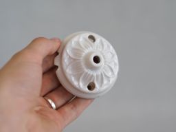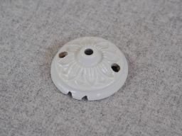 Rosace de plafond en porcelaine à motif floral, 2 points d’accroche pour fixation.
