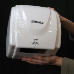 Sèche-mains mural à air chaud 2100w, de marque CASSELIN, modèle CSM1, temps de séchage 20s.