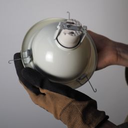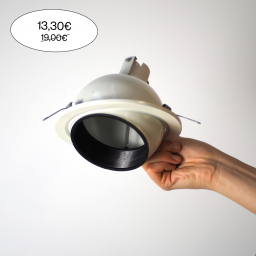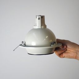 Spot encastrable orientable au design inspiré des années 1970-1980, modèle “eye ball”, pas de marque identifiée, de couleur blanc écru.