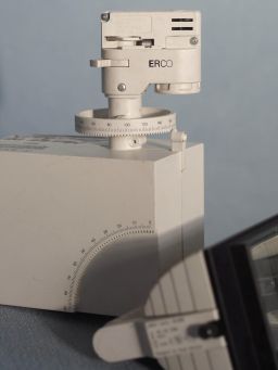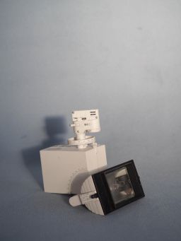 Spot sur rail, de marque ERCO, modèle ‘73001’ 230V, soquet TC-L 36 Watt, rotation 180°, inclinaison 90°.