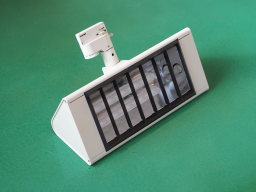 Spot sur rail, de marque ERCO, modèle ‘77801’ 230V, soquet 2 x TC-L 18 Watt, rotation 360°, inclinaison 90°