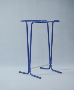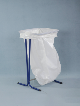 Support sac poubelle 110L sur pied en acier poudré traité anti-UV, de couleur bleu outremer.