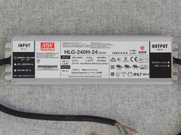 Transformateur électrique étanche IP67 24V-240W de marque MEAN WELL, modèle HLG-240H-24.