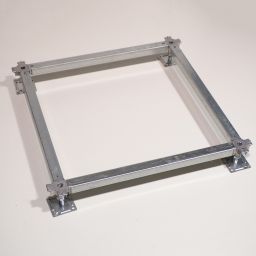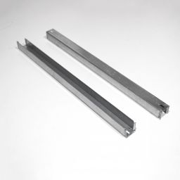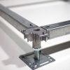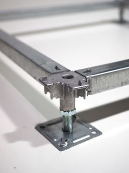 Traverse renforcée clipsable pour planchers techniques, profils en U en acier traité, les hauteurs d’aile et d’épaisseurs varient selon les performances de charges à obtenir, un embouti permet de les clipser sur les têtes de vérins standards ou de grandes hauteurs.